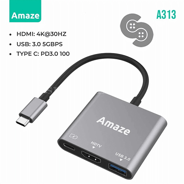 Elevate your connectivity with the Amaze 3-in-1 Type C Hub Adapter – A313, a sleek and versatile accessory that transforms your Type C device into a multifunctional powerhouse.