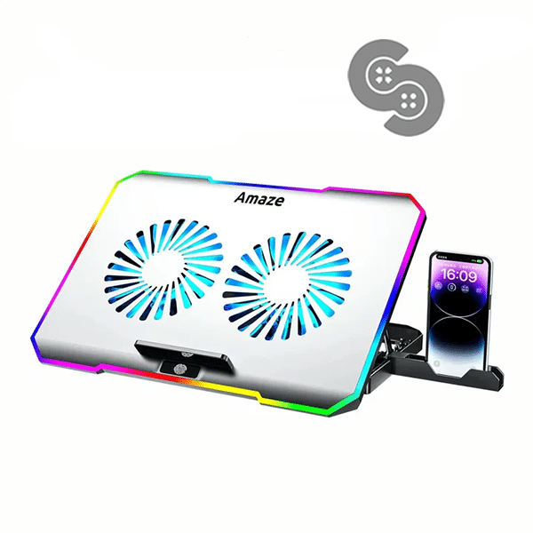 The Amaze Laptop RGB Cooling Stand A505 is a powerful and stylish cooling solution designed to enhance laptop performance and user comfort. With its dual-fan system and modern RGB lighting, it combines effective heat management with contemporary aesthetics.