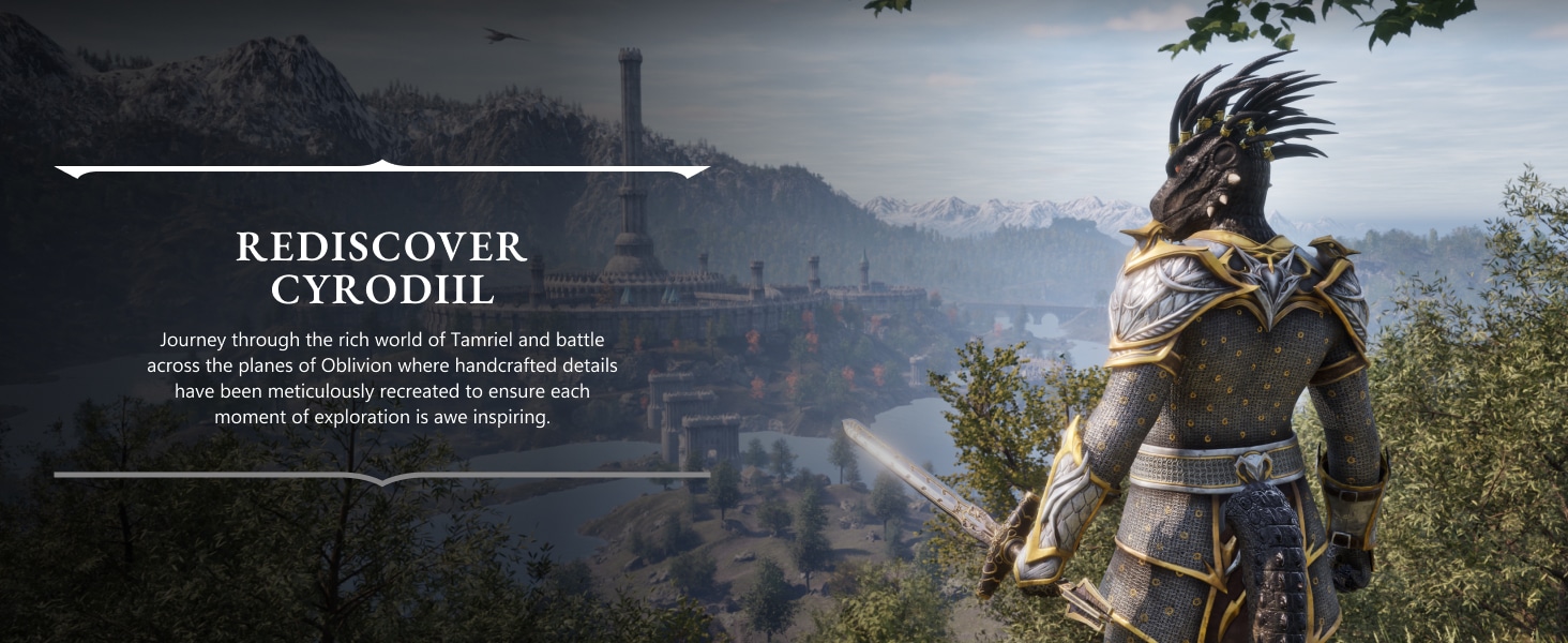 - Secondly, Journey through the rich world of Tamriel and battle across the planes of Oblivion where handcrafted details have been meticulously recreated to ensure each moment of exploration is awe inspiring.